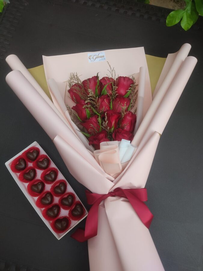 Ramo de rosas rojas, con chocolates un hermoso detalle que despierta sentimientos y emociones.