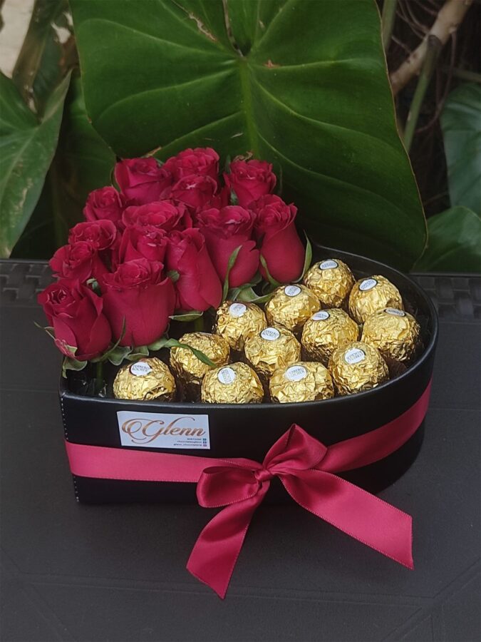Corazón con rosas y ferreros