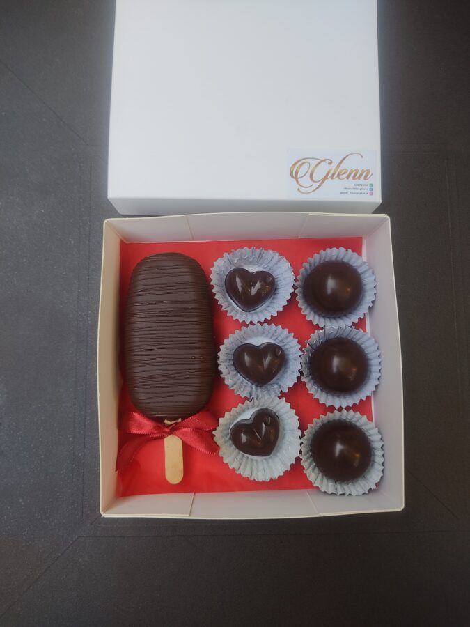Paleta y chocolates rellenos, una manera tierna y dulce de expresar tu cariño.