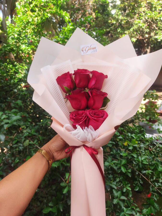 Hermoso ramito de 8 rosas rojas, ideal para sorprender con este detalle.